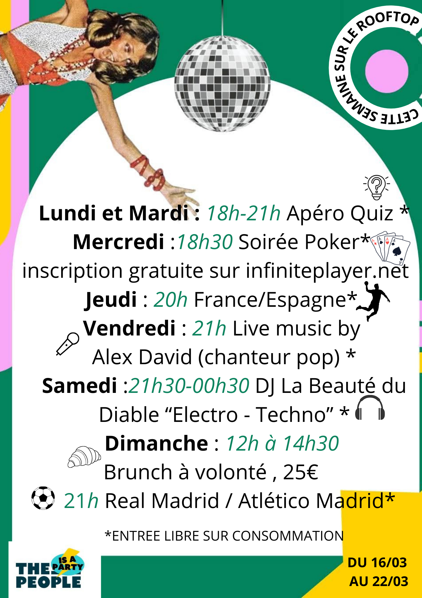 Jeux de société, Enfants bienvenus, Devis personnalisé gratuit, Musique live / Concerts, Privatisation du Rooftop, DJ Set